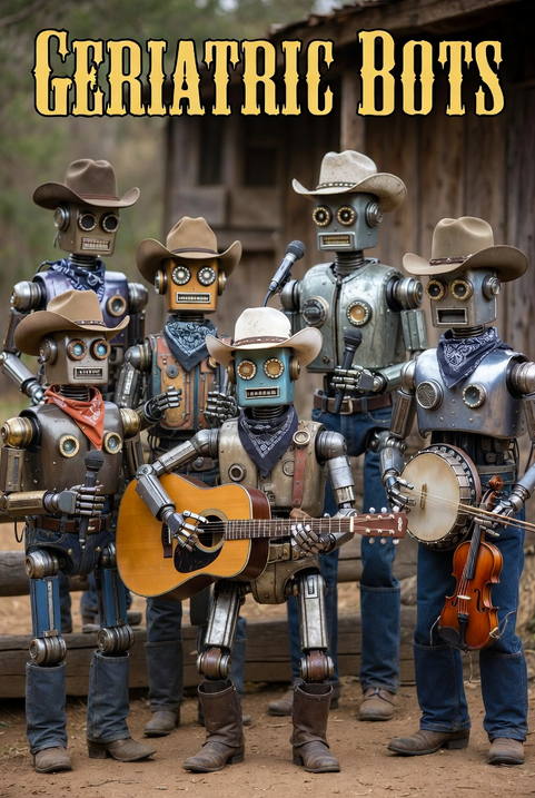 The links below lead to music played by Michael Voors and music written by him but performed by The Geriatric Bots, which are AI generated.